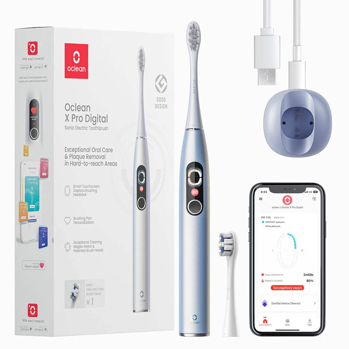 • Customise your brushing experience with the Oclean Care app. You can choose your preferred duration, intensity, and cleaning mode